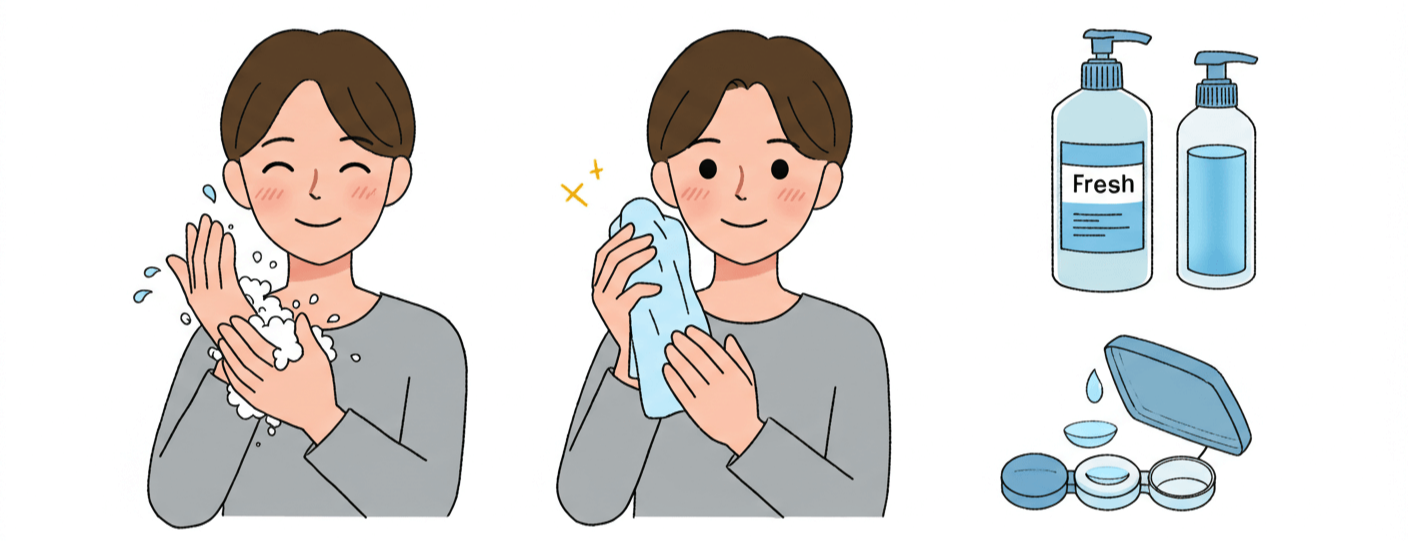 • 청결 유지: 손으로 눈을 비비지 않고 깨끗한 수건을 사용하며, 콘택트렌즈 착용 시 손을 깨끗이 씻어야 합니다.
